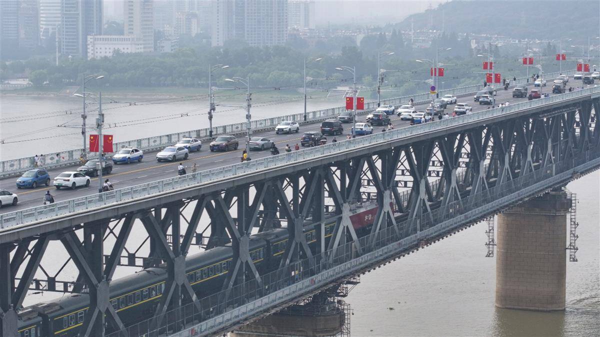 长江大桥上出现了“中国红”,游客们一起踩这